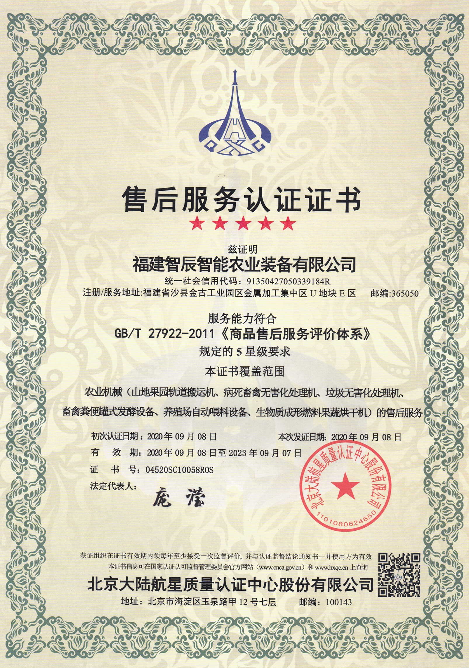公司通過了環境、質量、管理、職業健康安全管理體系認證,并取得了《商品售后服務評價體系》五星級認證。公司重視技術創新和質量管理。與臺灣 4所大學、福建理工大學、福建省機械科學研究院、福建省林業科學研究院等科研院所合作,成立了“海西臺灣農林機械研發推廣中心”。先后獲得59項國家專利,16項農機推廣鑒定證書。公司7個型號產品入選農業農村部遴選目錄,并被評為全國畜禽養殖機械化典型案例。2021年公司獲得福建省“專精特新中小企業”、國家高新技術企業等榮譽,2022年畜禽糞便發酵處理機被列入“福建省工信廳重大技術裝備首臺套”,2023年公司被授予“中國竹產業協會三十周年先進單位”。