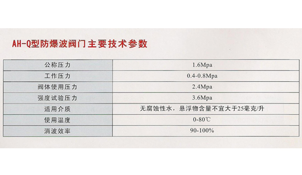 AH-Q型防爆波閥門主要技術(shù)參數(shù)